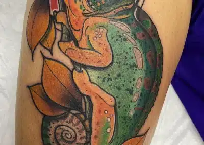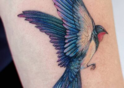Farbrealistische Tattoos erfordern eine aufwendige Technik. Statt mit Linien, arbeiten wir hier mit einer umfangreichen Farbpalette. Dadurch entsteht ein beeindruckender 3D-Tiefeneffekt. Auch in dieser Spielart kann fast jedes Motiv umgesetzt werden. Es ist jedoch wichtig, auf eine entsprechende Größe zu achten. Nur so bleibt dein Tattoo lange schön anzusehen.