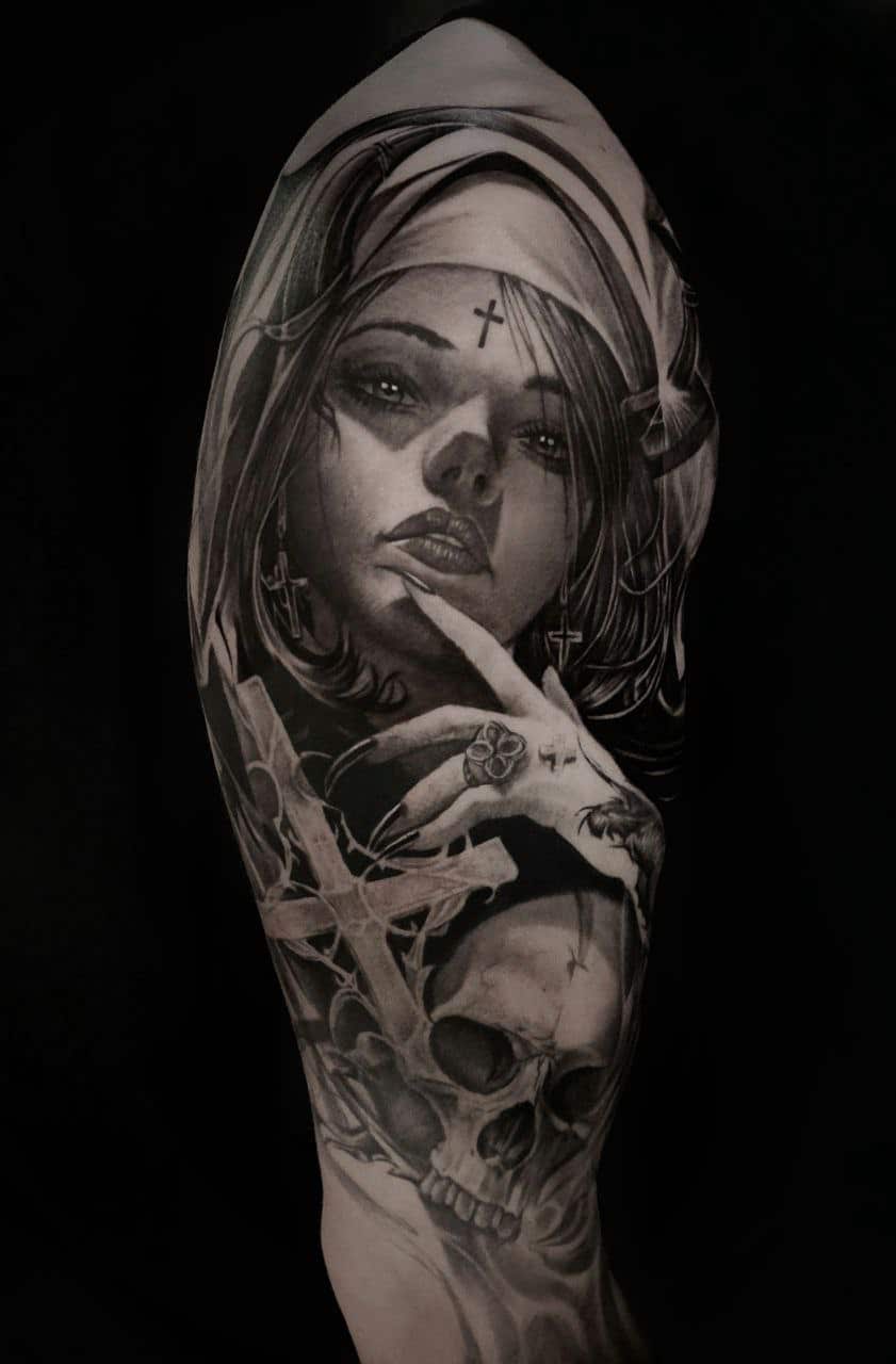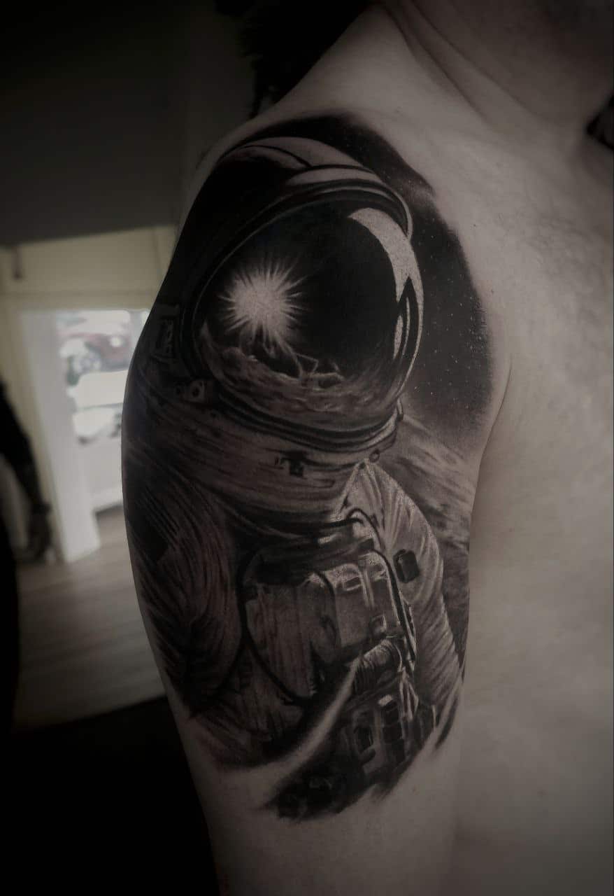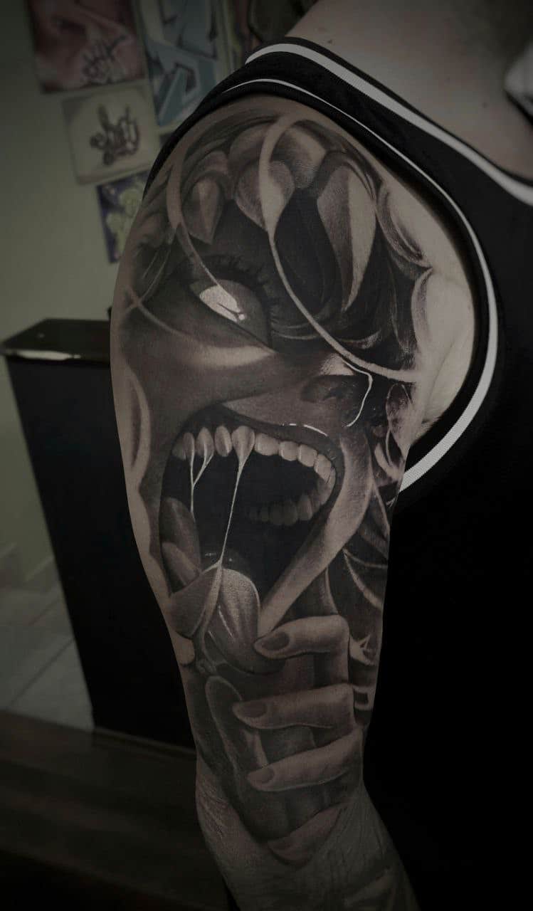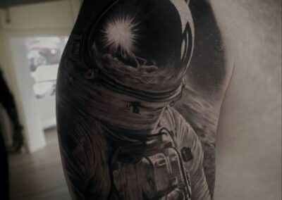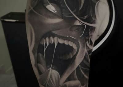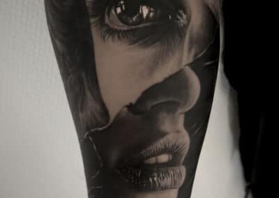 Diese Stilrichtung wird auch als 3D-Tattoo bezeichnet. Die erforderliche Tiefe wird bei diesem Stil durch kunstvolle Hell-/Dunkelschattierungen erzeugt. Die leichte Linienführung unterstützt diese Wirkung. Realismus-Tattoos sind unsere Spezialität – wir können fast jedes Motiv umsetzen. Als Vorlage benötigen wir ein hochauflösendes Foto.​